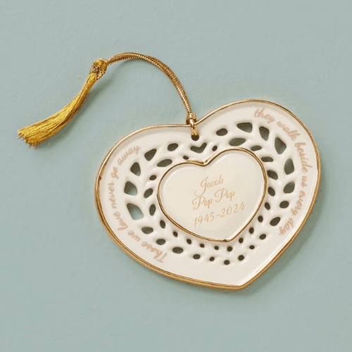 • Our Pick: Personalized In Loving Memory Memorial Heart Ornament by Lenox | $26.95